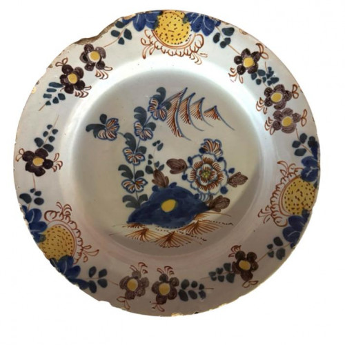 A large 19th century Italian glazed passata dish, the interior tin glazed in green and white.