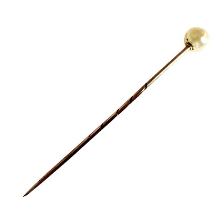 A 19th century yellow gold gentleman's stick pin with a single natural saltwater pearl, circa 1860.