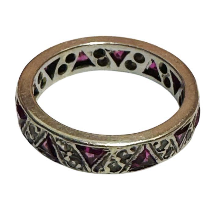 An Art Deco white gold 1920a ruby full eternity ring, marked 9ct.