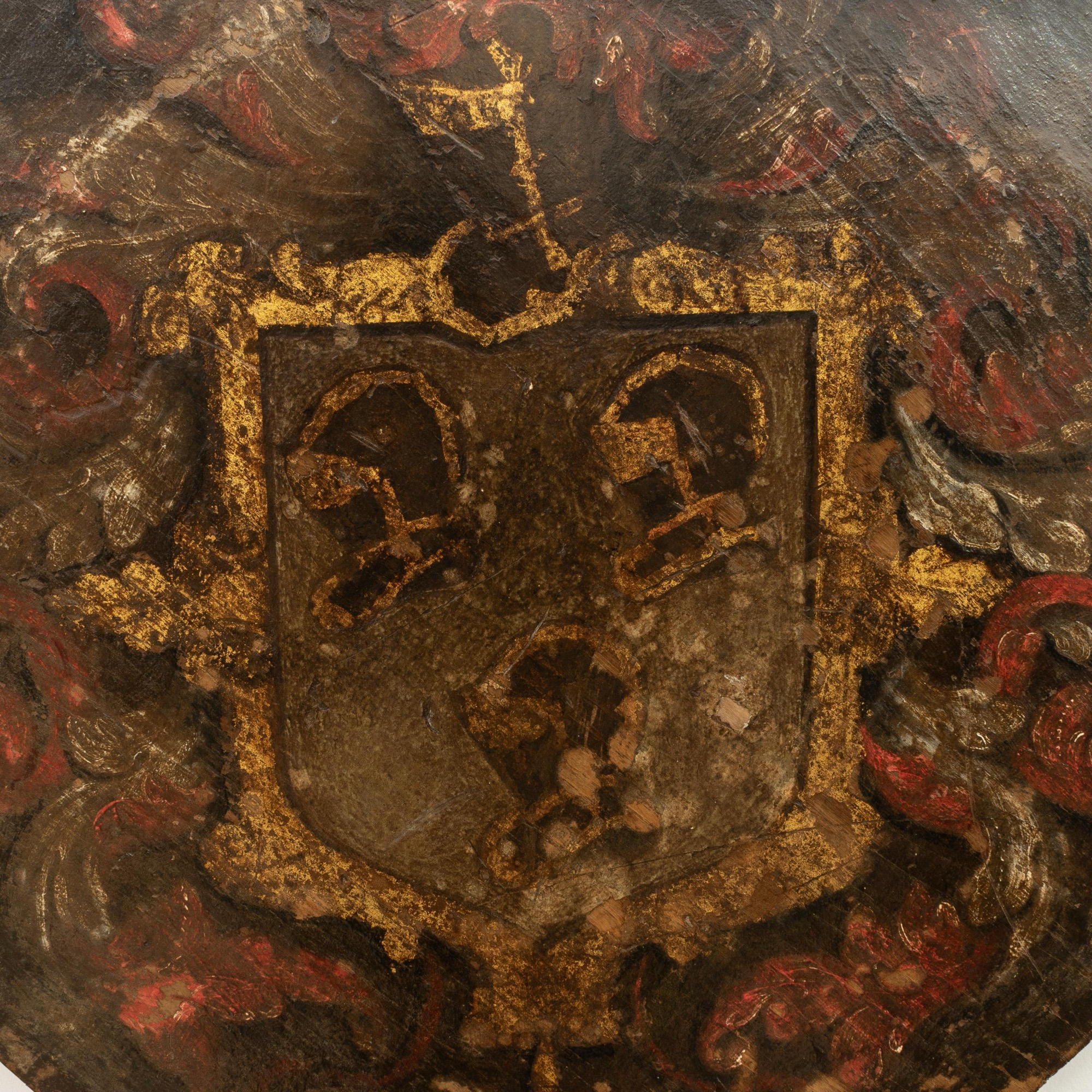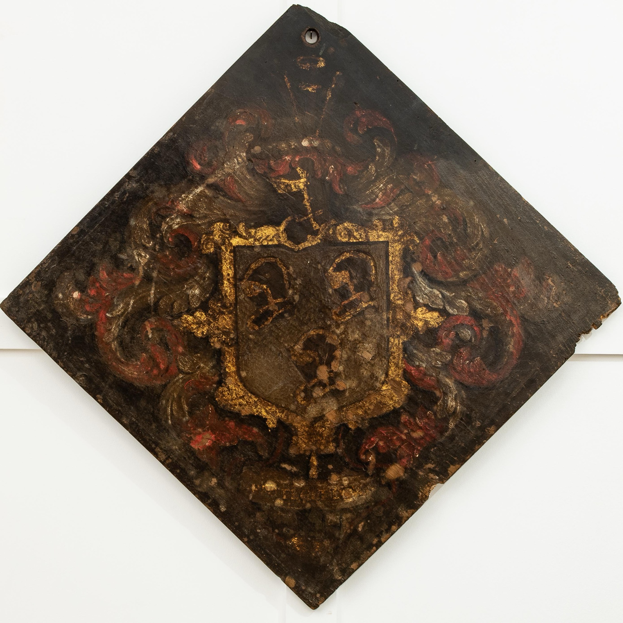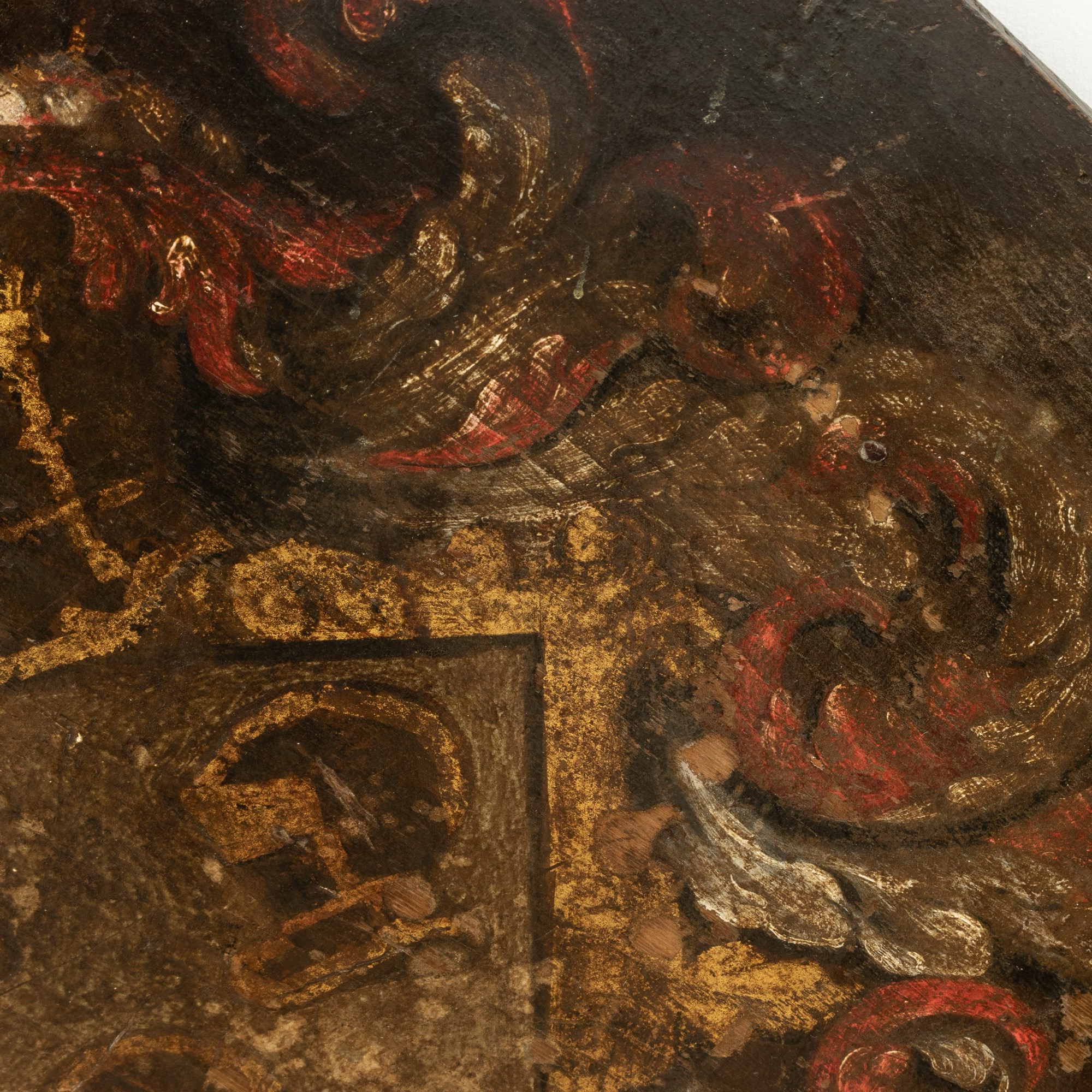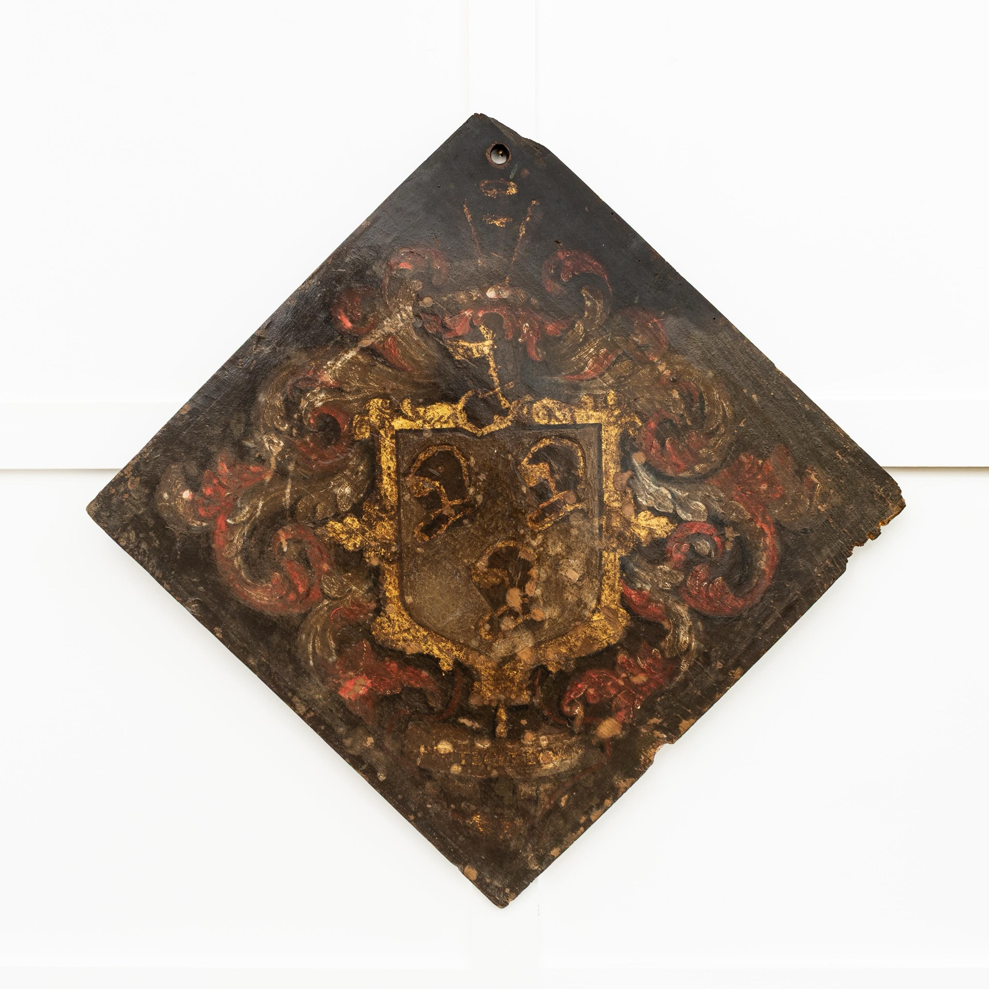 Former property of Clive Sherwood: A 17th century polychrome-decorated hatchment, on a single elm board, English
