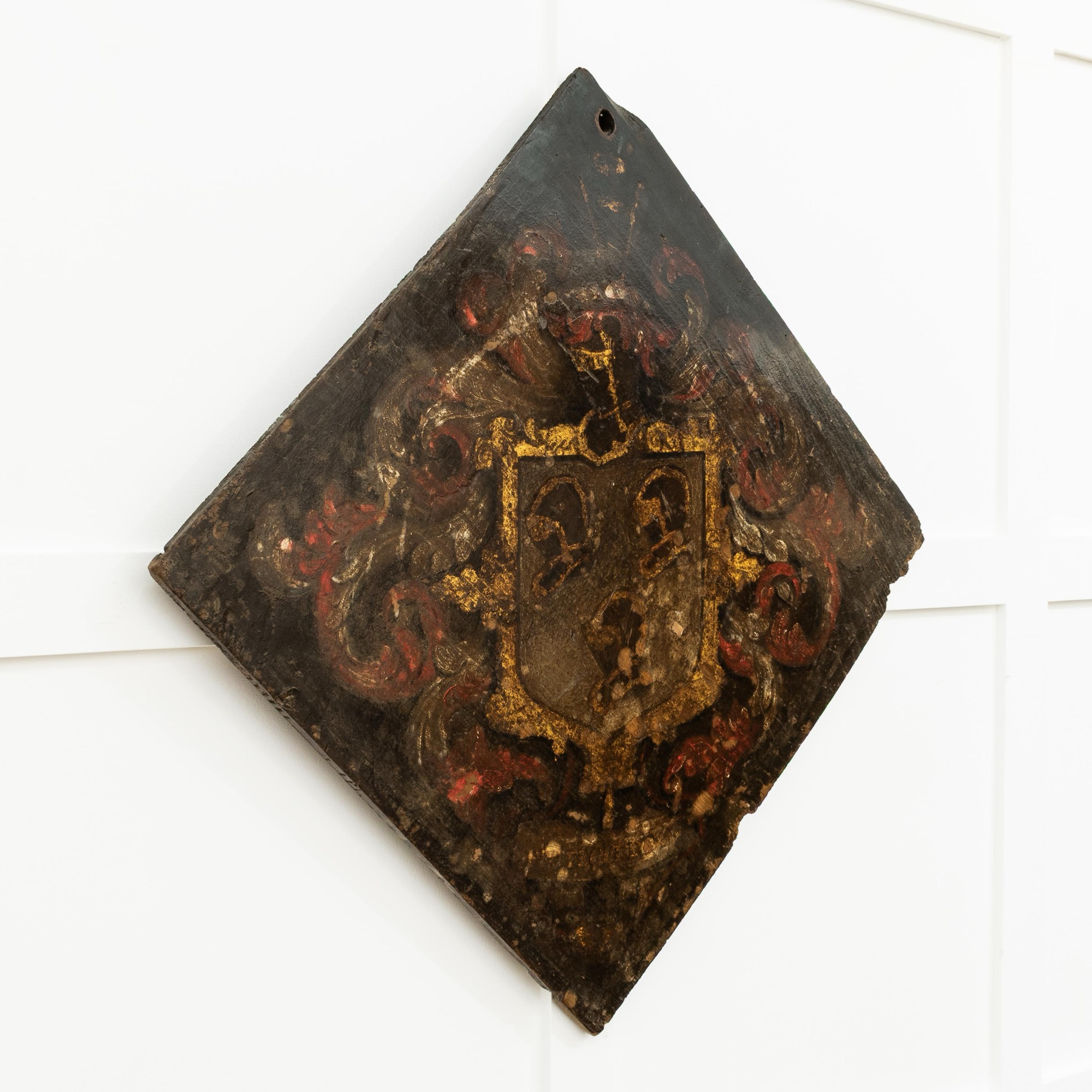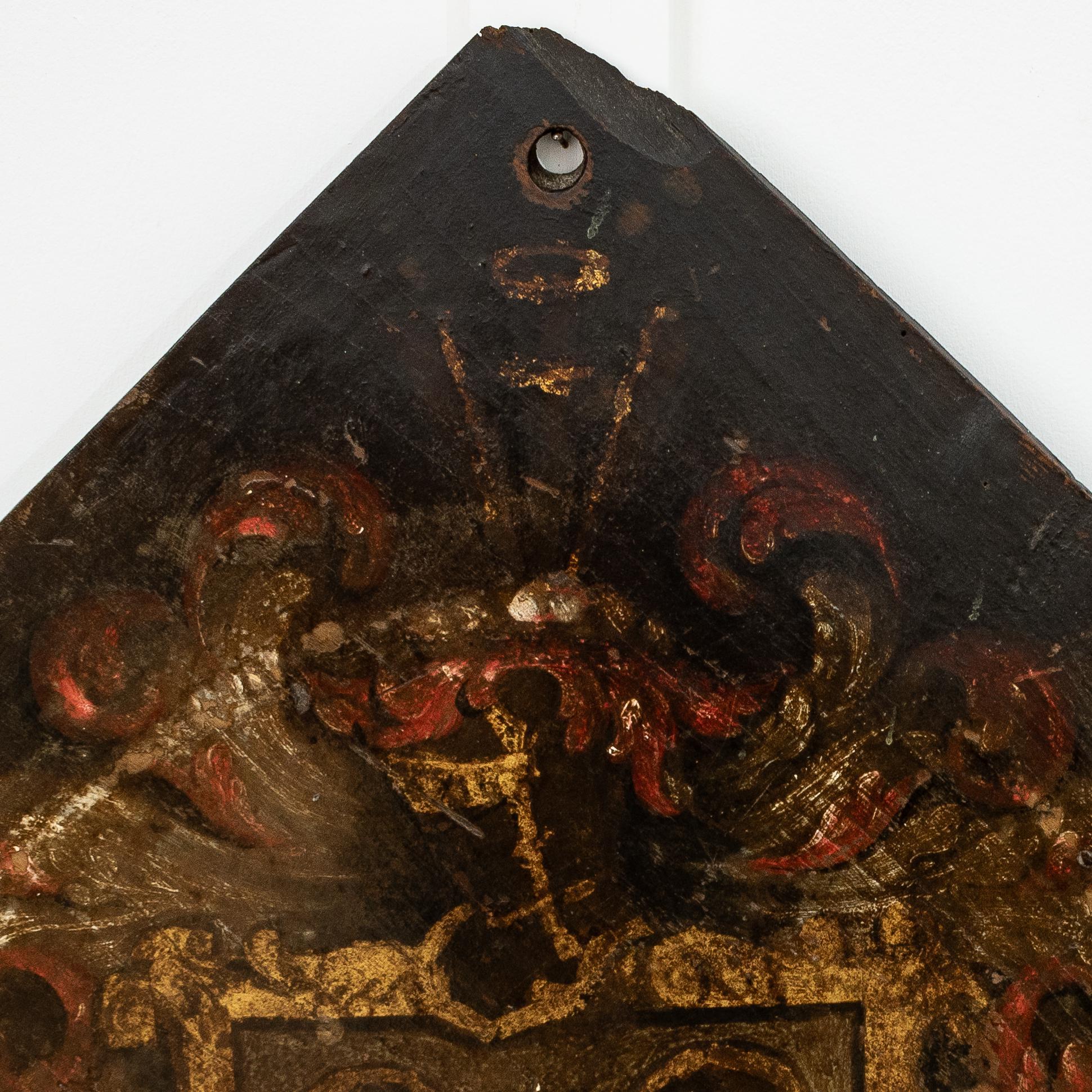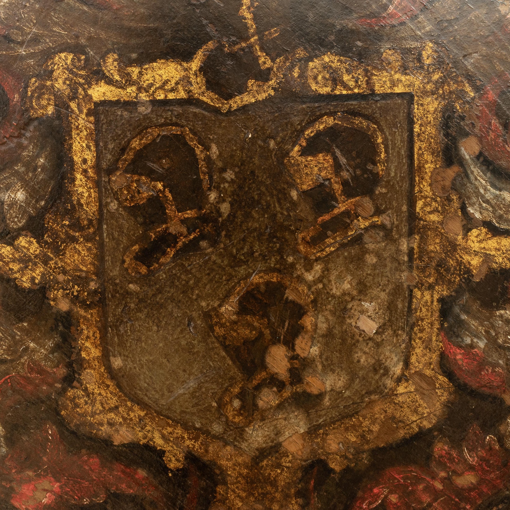 Former property of Clive Sherwood: A 17th century polychrome-decorated hatchment, on a single elm board, English
