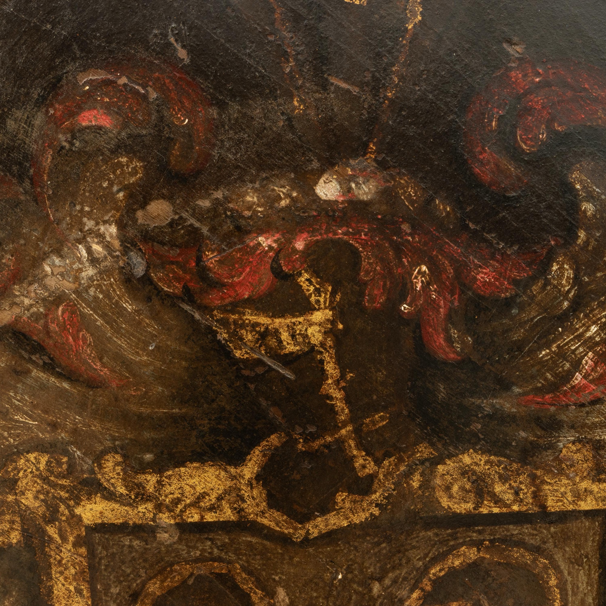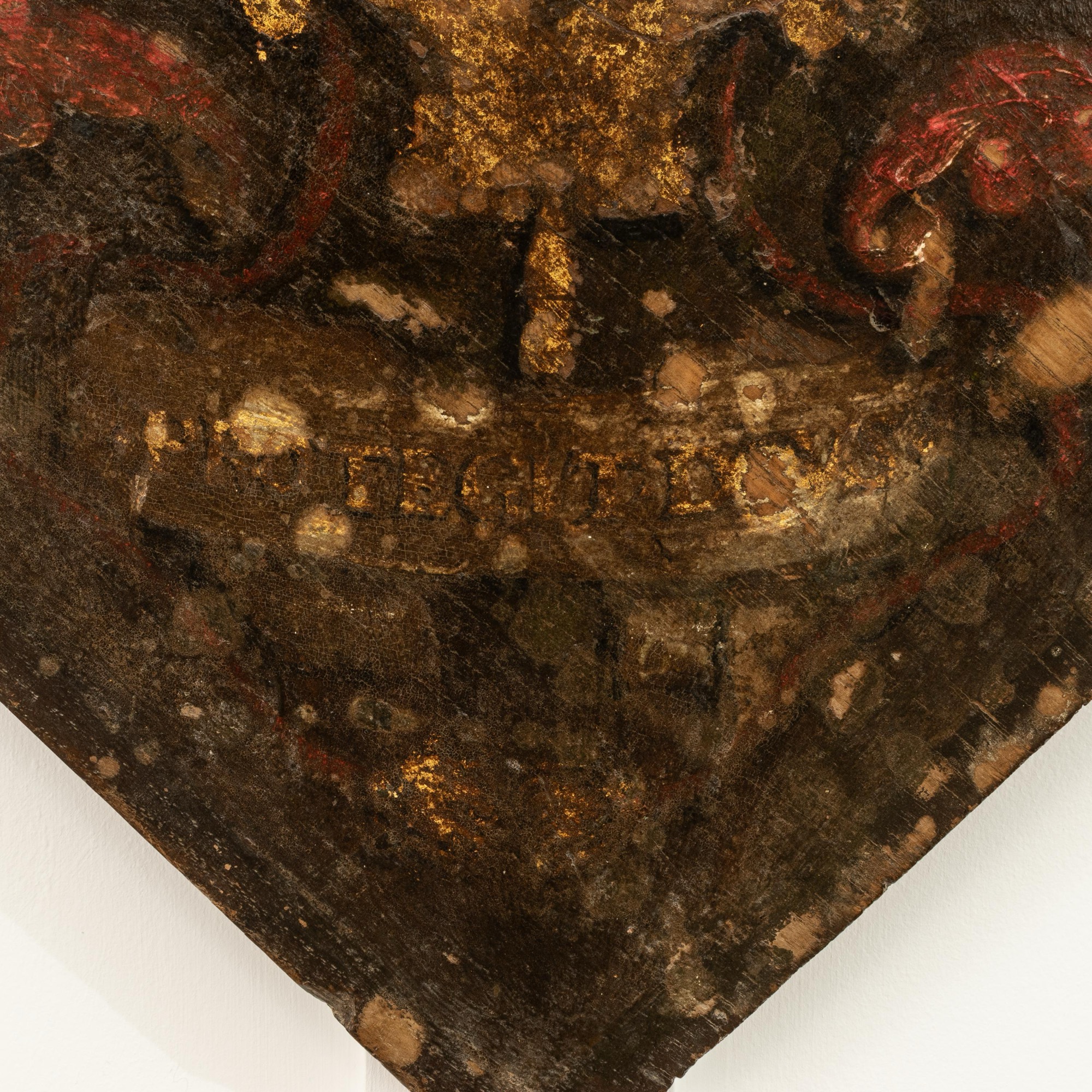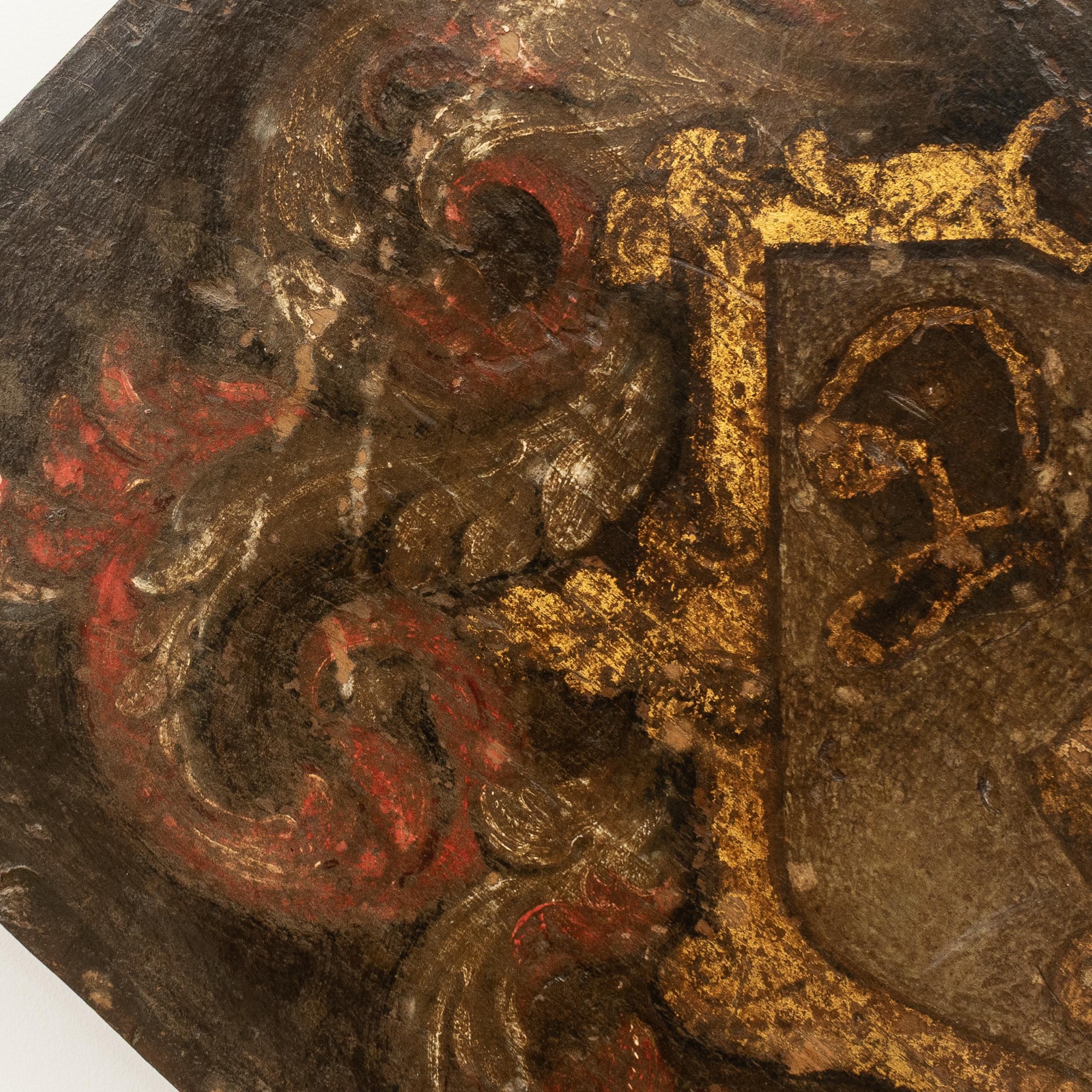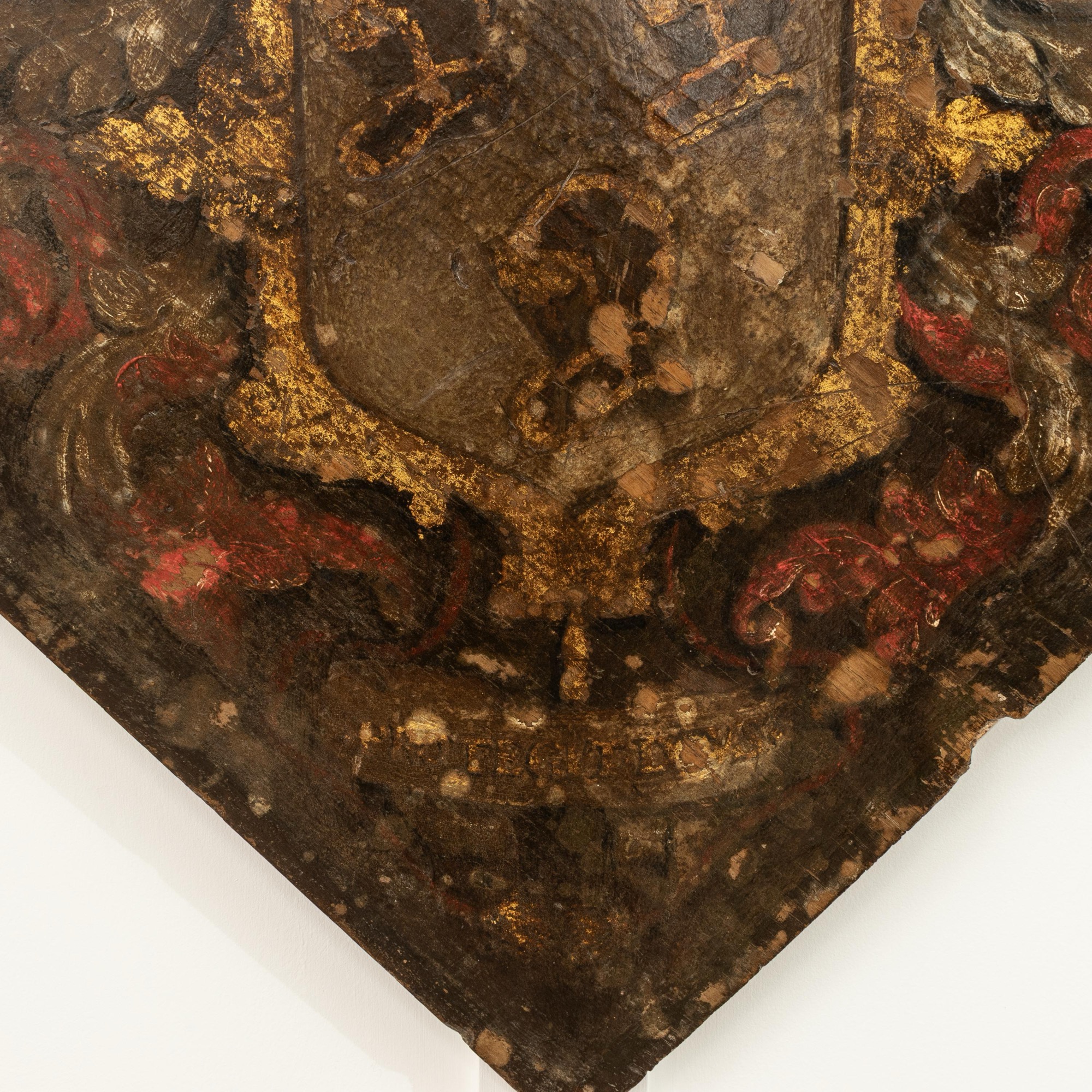 Former property of Clive Sherwood: A 17th century polychrome-decorated hatchment, on a single elm board, English
