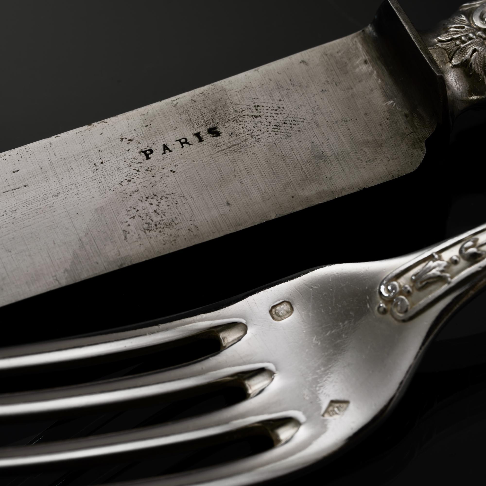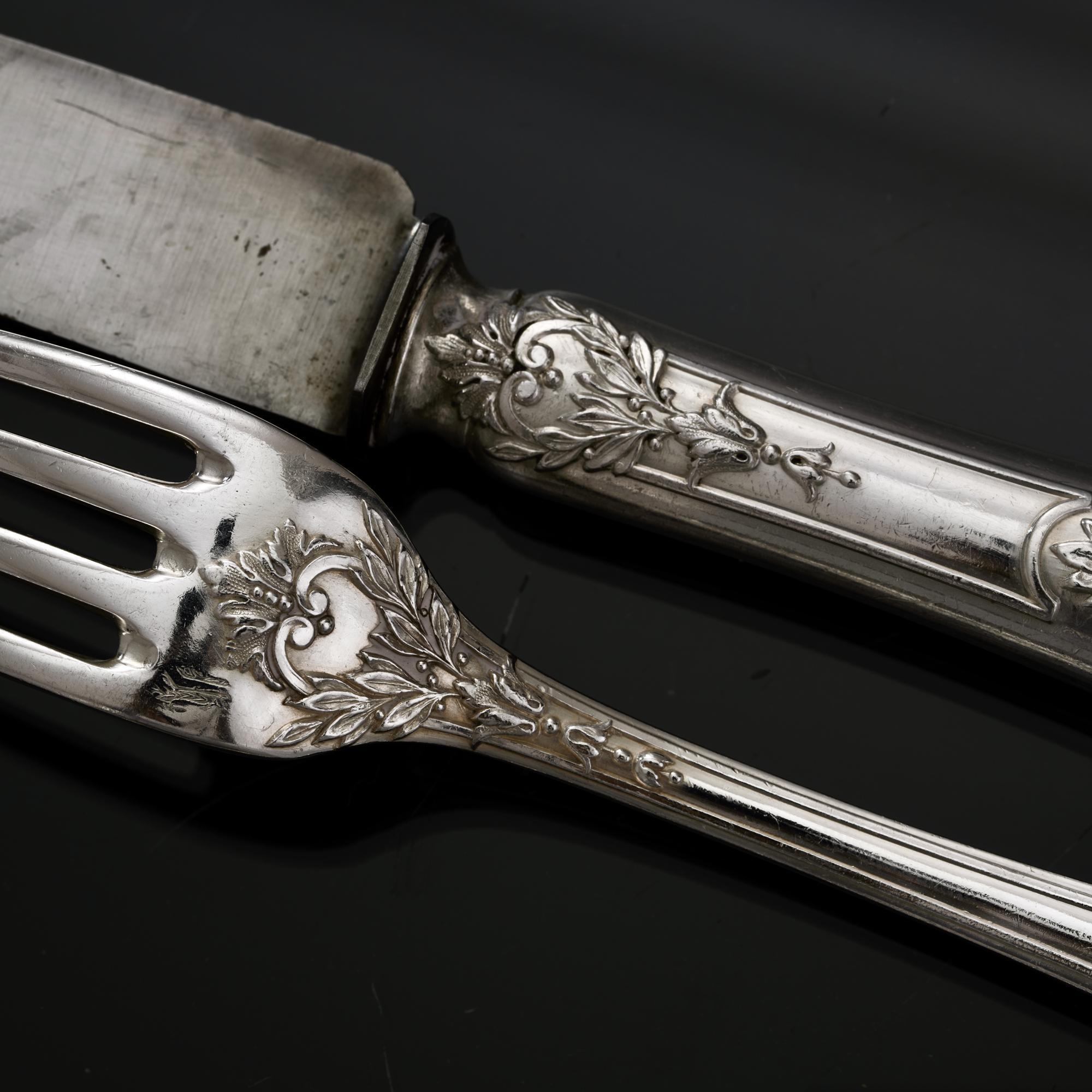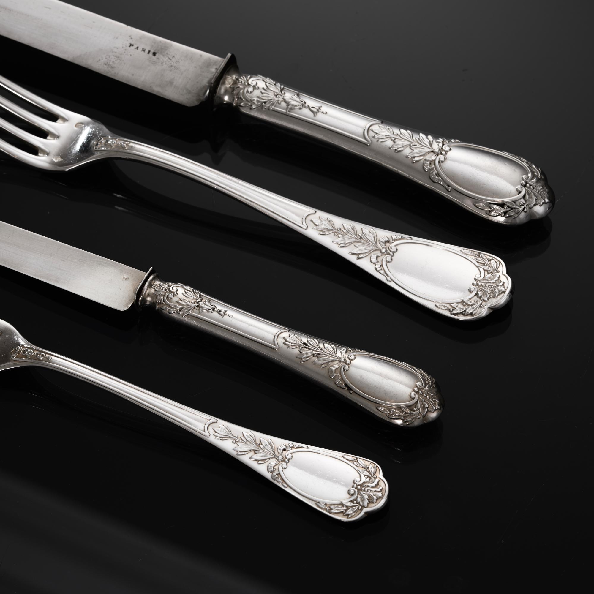 Antique 1st standard French La Regence pattern cutlery set for 12 in canteen
