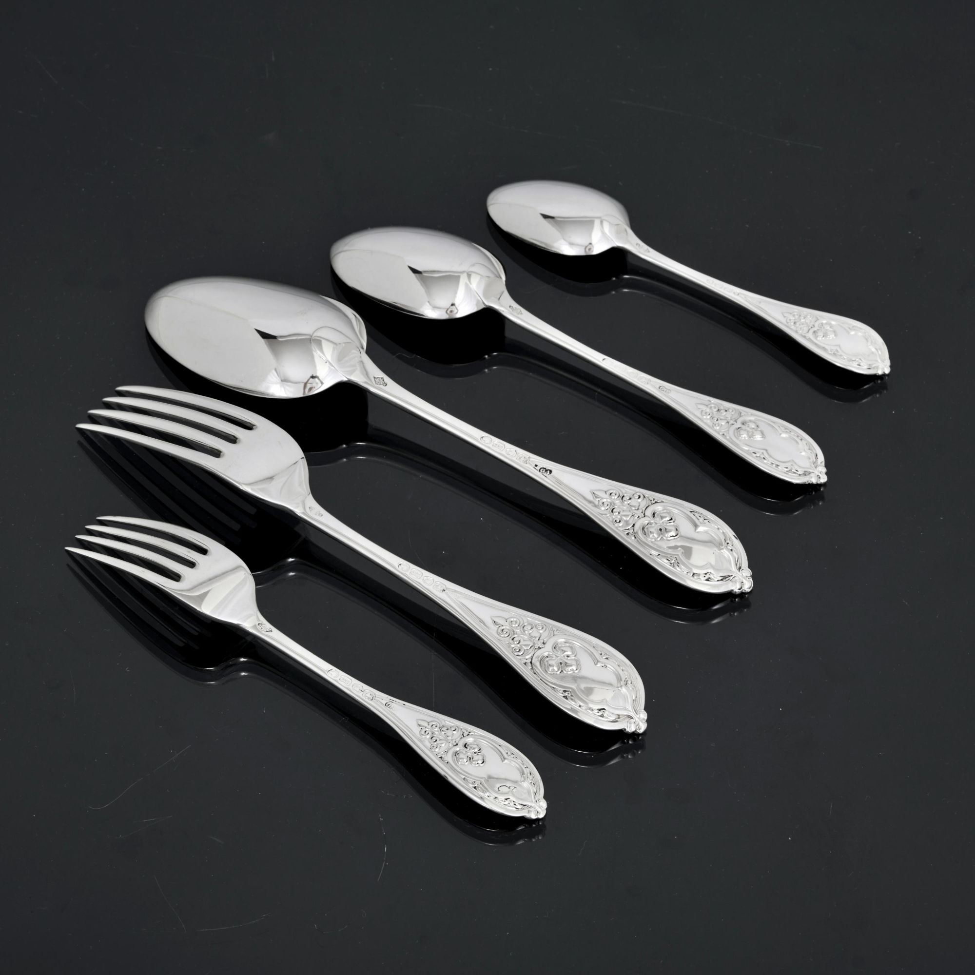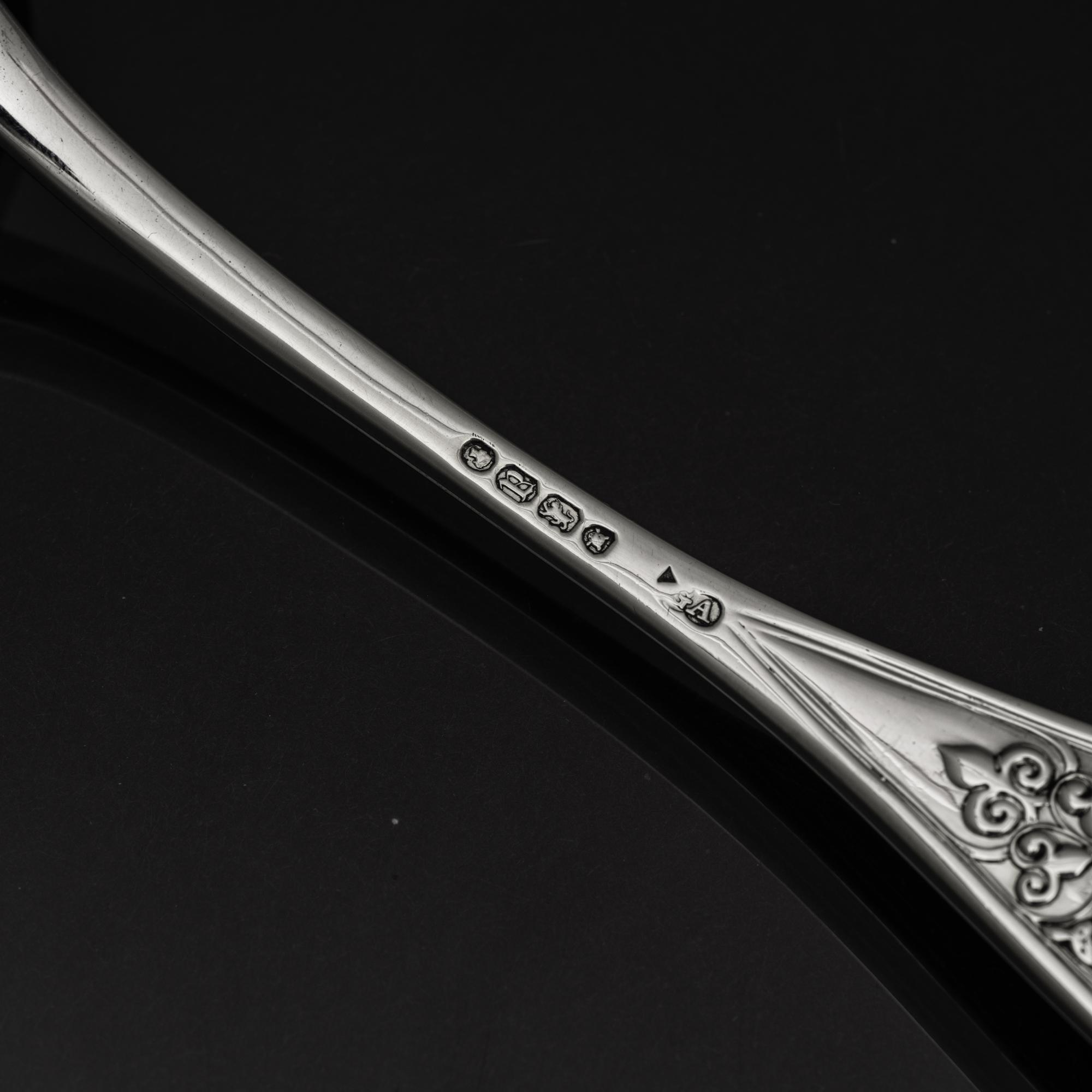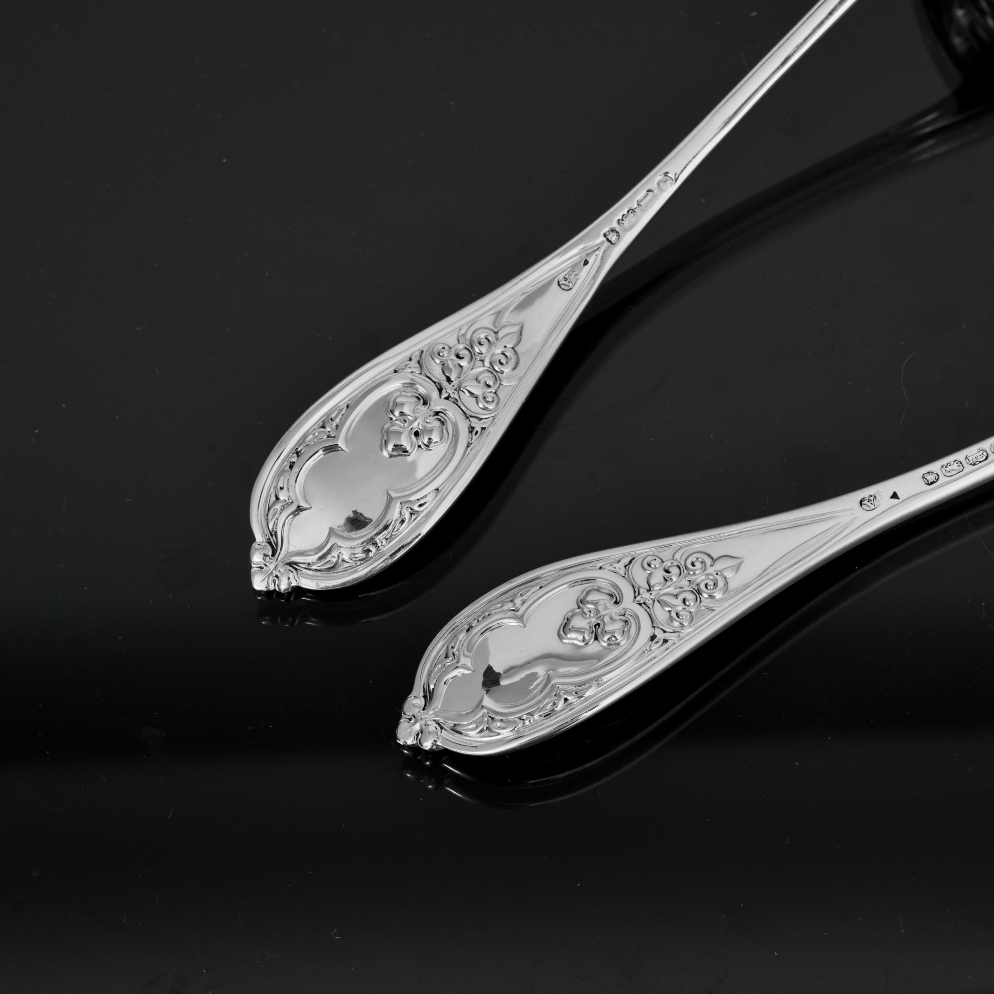 - Rare set of Victorian hand-forged New Gothic sterling silver cutlery for 18