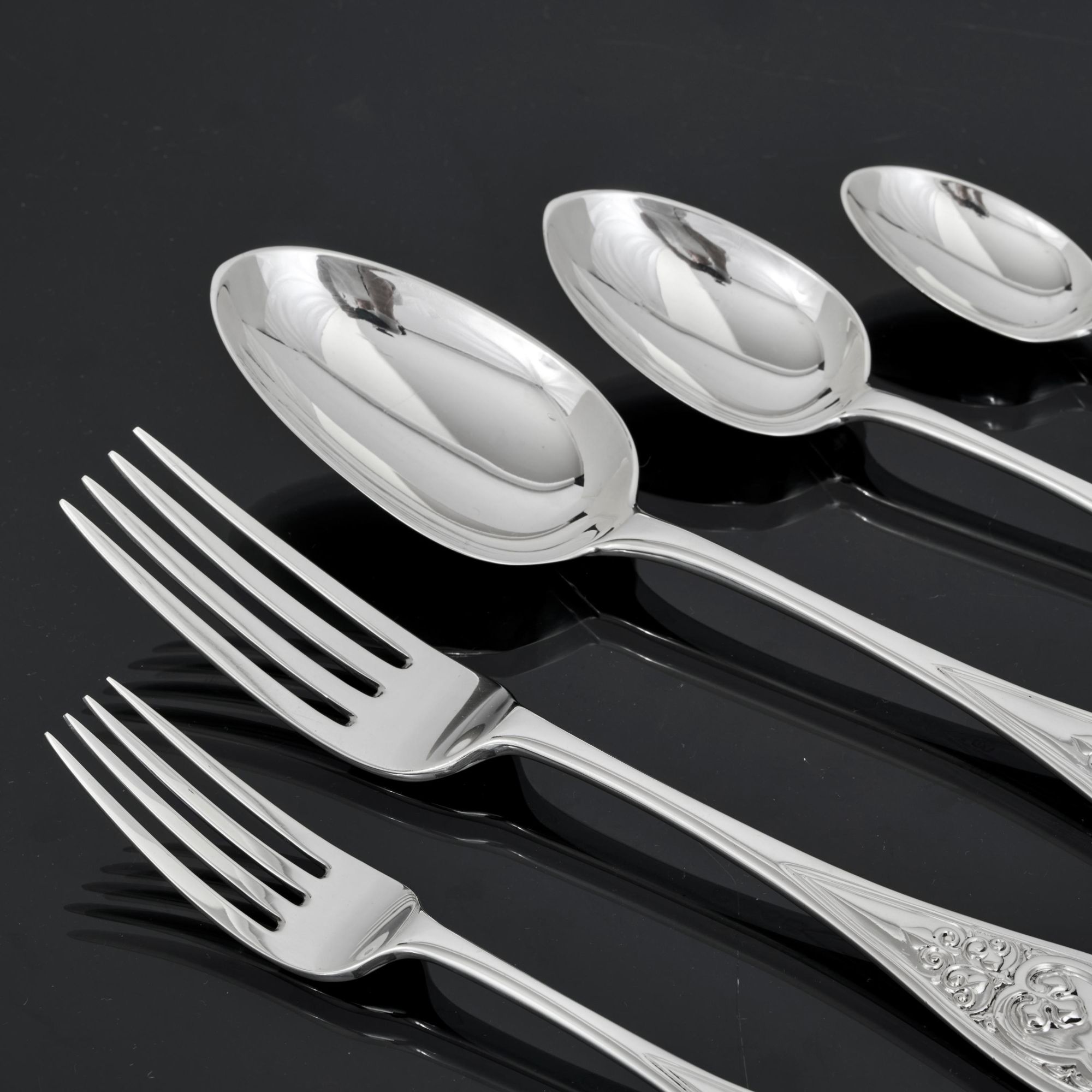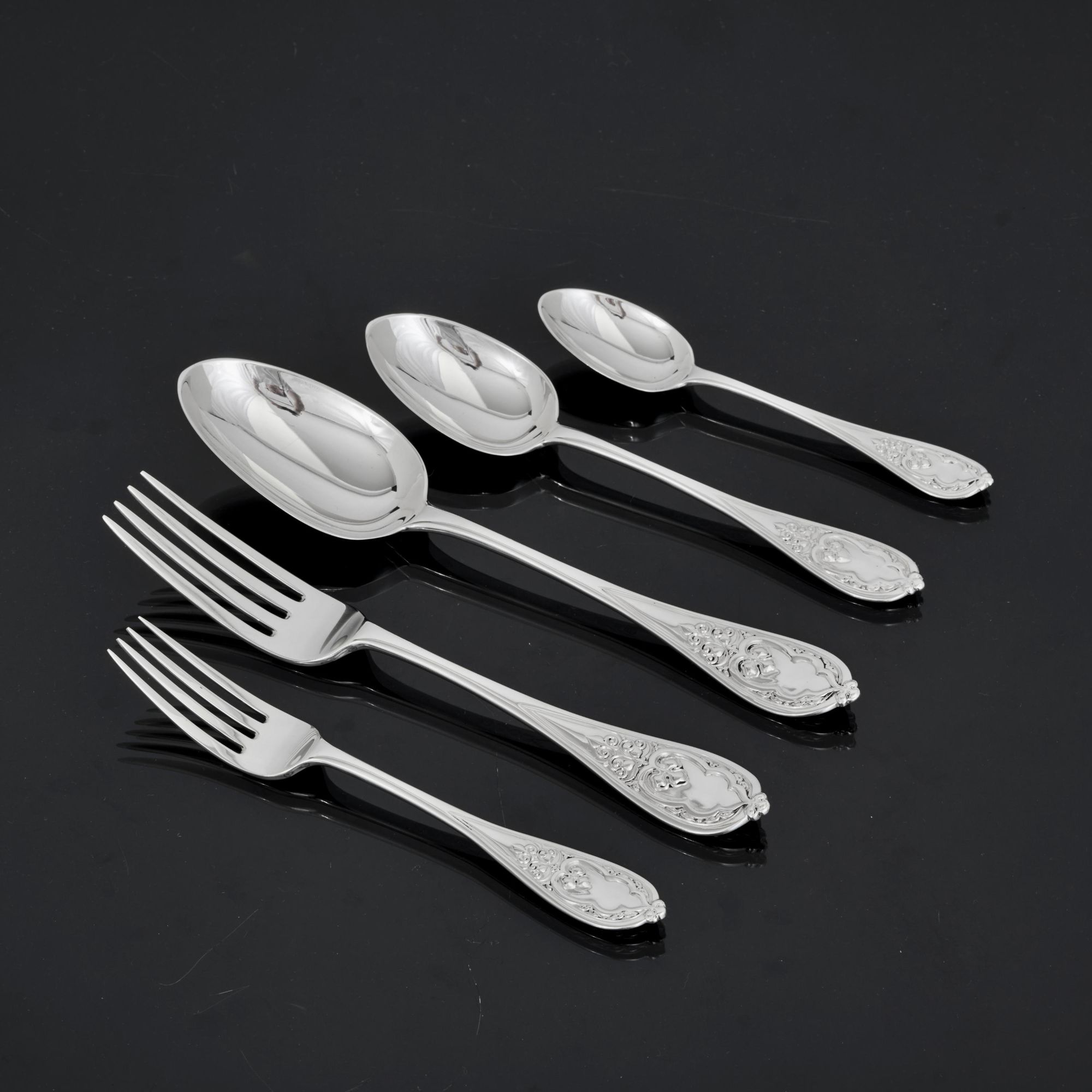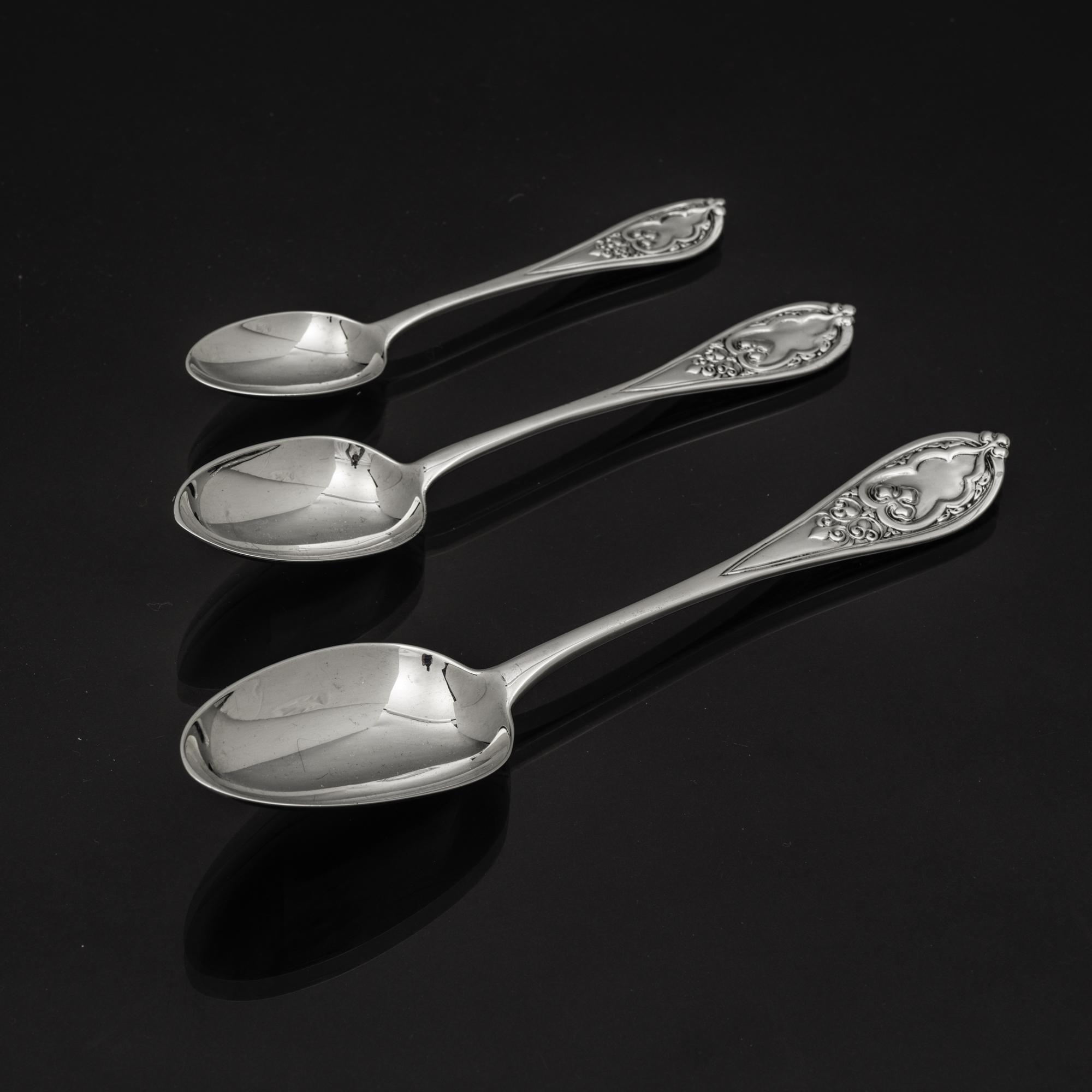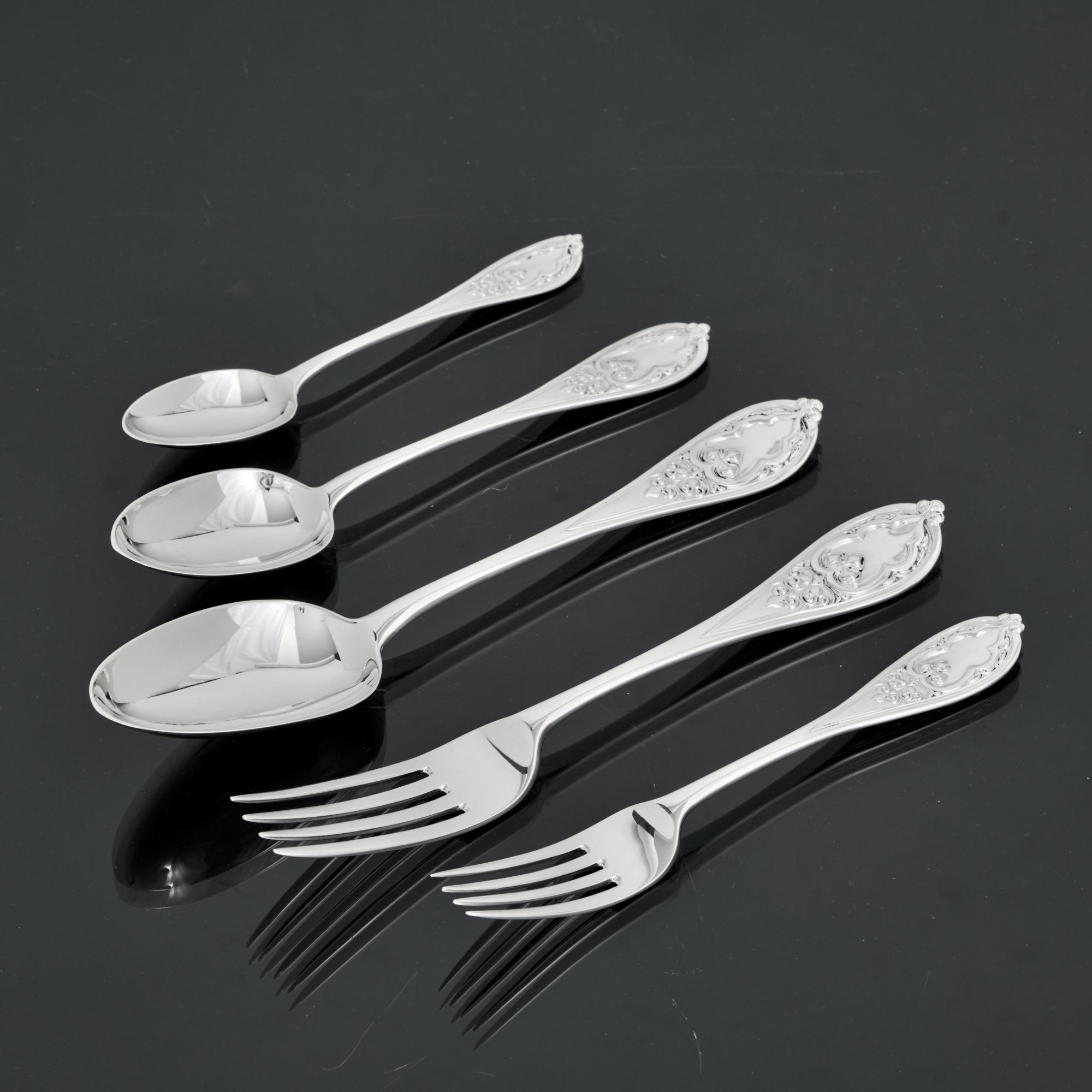 - Rare set of Victorian hand-forged New Gothic sterling silver cutlery for 18