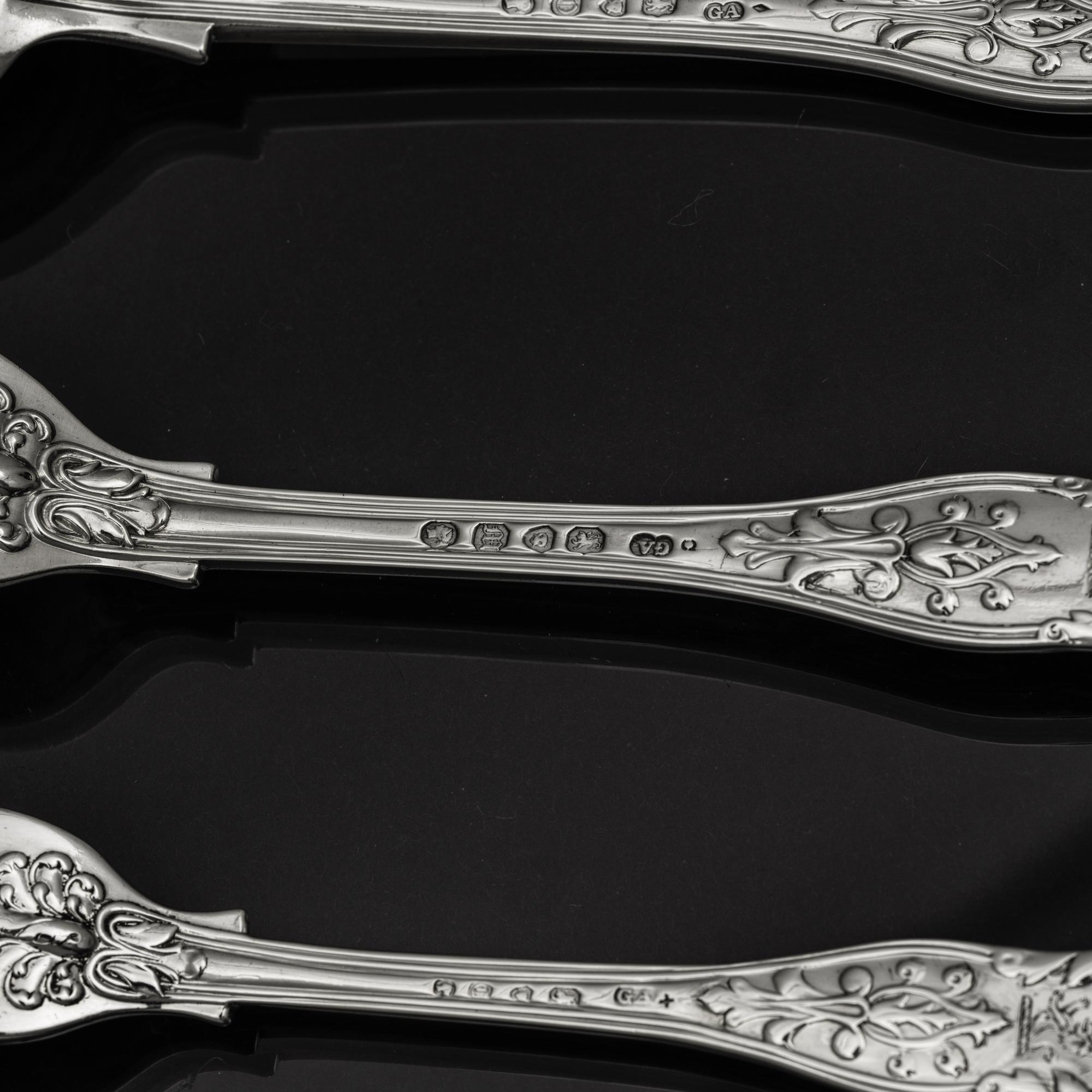 This rare New Gothic sterling silver cutlery pattern was first registered by Chawner & Co, one of the top cutlery makers of the Victorian era and managed by George Adams. It first appeared in the Chawner pattern book in December 1854 and the design reflects the Gothic revival that was fashionable in Britain, which reached its zenith during the mid to late-Victorian era circa 1870.